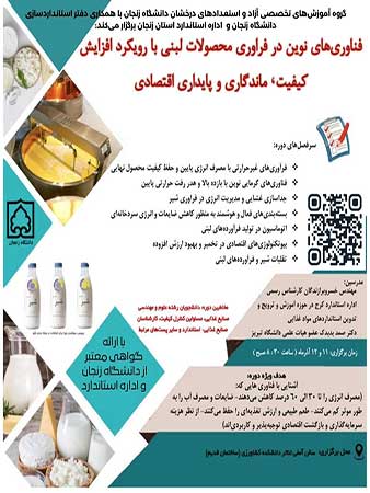 گروه آموزشهای تخصصی آزاد و استعدادهای درخشان دانشگاه زنجان با همکاری دفتر استانداردسازی دانشگاه زنجان و اداره استاندارد استان زنجان برگزار میکند: